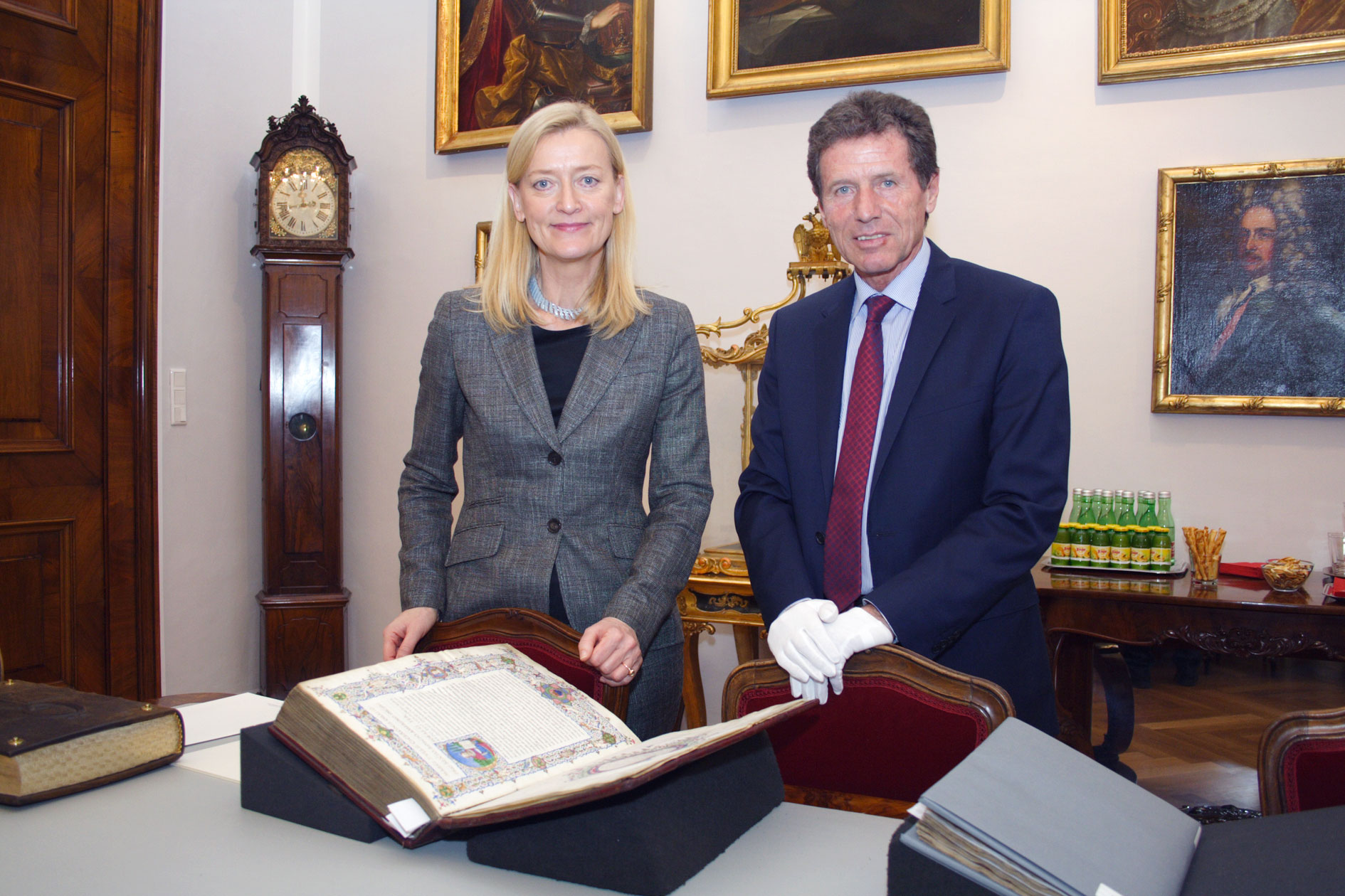 Generaldirektorin Dr. Johanna Rachinger: „Als größte Bibliothek des Landes restaurieren wir an die 10.000 Objekte pro Jahr. Ohne die ideelle und finanzielle Unterstützung so engagierter Persönlichkeiten wie Bundesminister Töchterle wäre das in diesem Umfang nicht möglich.“